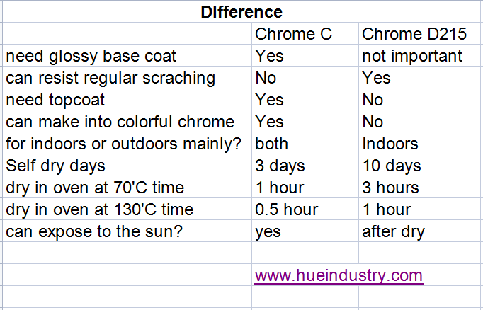 Easy mirror chorme paint D215 is the present easiest and the best mirror chrome paint in the market, this is the 4th generation chrome effect paints from HUE, it is easy and fast to be used, can widely replace the traditional chrome plating.