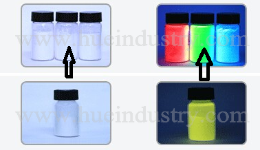 赫优紫外荧光粉,常态下呈现淡白色半透明色,在紫外线照射下可同时显示红黄蓝绿等颜色,常用于防伪和标识类印刷。